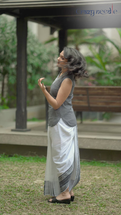 Women's Grey Organza Silk Co-Ords Set With Inner Blouse