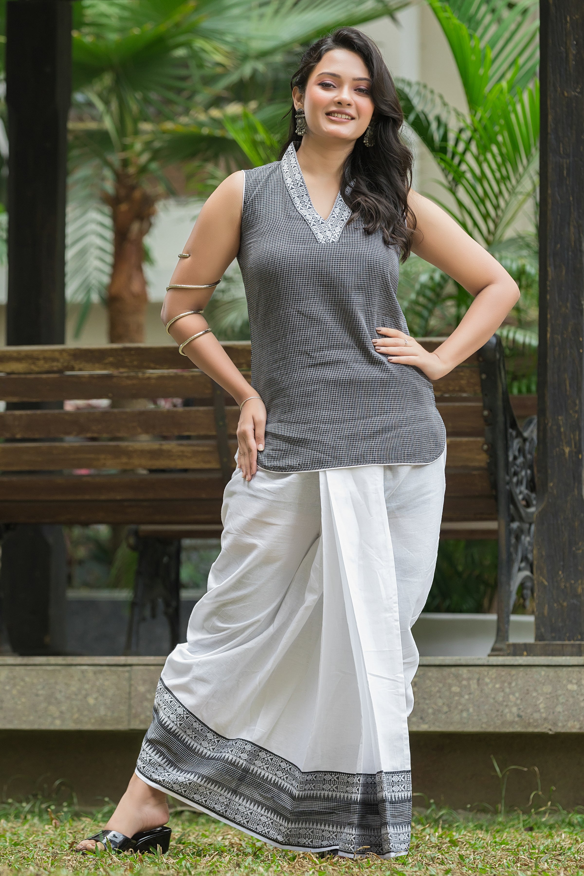 Women's Maroon Dhoti With Black Ajrakh Print Top